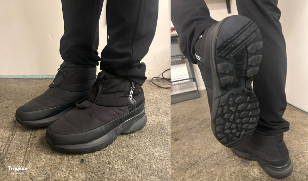 下半身更簡單了,厚長褲+長襪+半筒雪靴,如果當天有長時間戶外活動,會再加上保暖褲。另外其實在北海道路人走的地方積雪都會整理,好穿脫的半筒雪靴最推薦,而且鞋身防水、鞋底有止滑功非常重要,不少道民都會穿 SOREL、Colombia、The North Face 等登山品牌。也建議比較怕冷的男生,可以用北海道的超商與藥局都能買到的「貼式暖暖包」,貼在靴子內側、外套裡側靠近脖子後方等處,經由血液循環暖遍全身最有效率。
