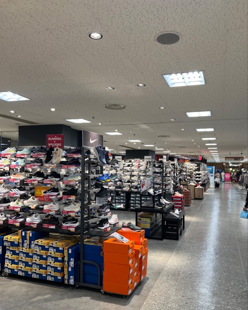 มากันที่ร้านรองเท้าร้านแรกของห้าง Sapporo Stella Place นั่นก็คือ sports lab by Atmos ตั้งอยู่ที่ชั้น 3 ของห้าง ซึ่งเป็นร้านรองเท้าที่รวมเอาความแฟชั่นและกีฬาเอาไว้ โดยในตอนนี้สินค้าส่วนใหญ่จะเป็น On หลากหลายรุ่น และที่ขาดไม่ได้คือ Nike อาธิเช่นรุ่น airmax Flyknit ใครสาย on และ Nike ไม่ควรพลาดร้านนี้