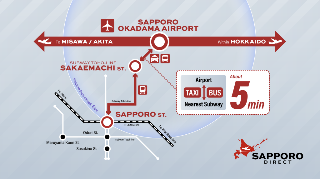 Your journey begins at Okadama Airport, located about 6 kilometers from central Sapporo and reachable in roughly 30 minutes by car or bus.