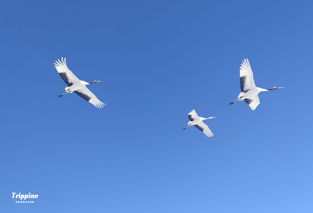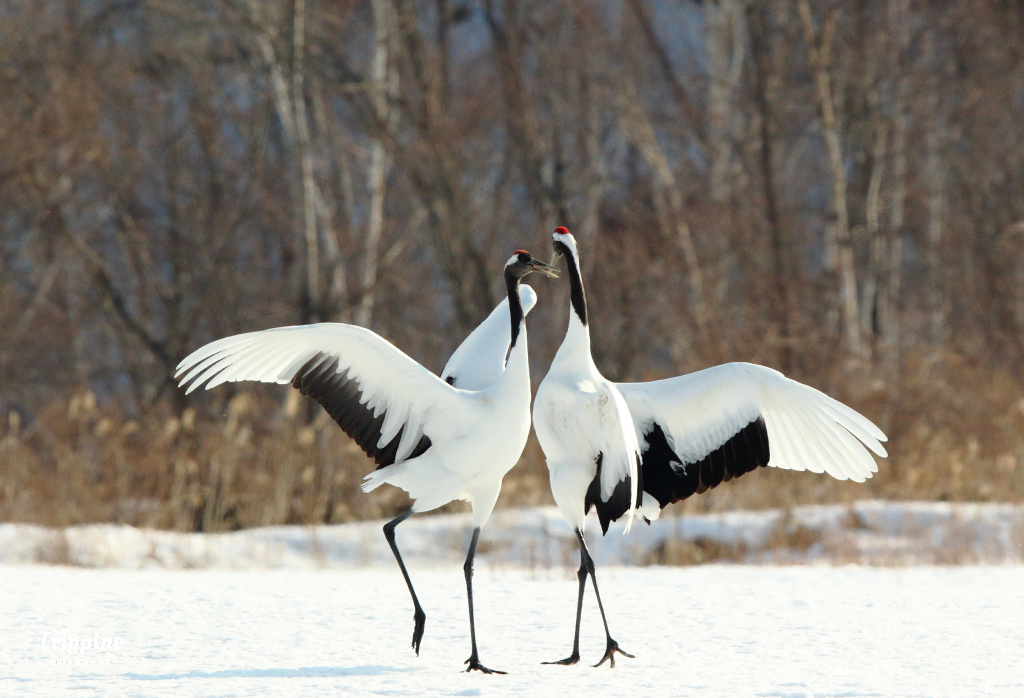 In winter, pairs of cranes call to one another across the snowy plains and perform elegant courtship dances. Against the white landscape, their movements appear almost like a living ink painting—quiet, poetic, and unforgettable.